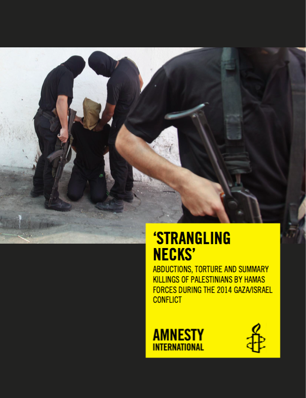 Förra veckan kom Amnestys rapport “’Strangling Necks’ Abductions, Torture and Summary Killings of Palestinians by Hamas Forces During the 2014 Gaza/Israel Conflict.” Det är en förfärande läsning om Hamas våld och övergrepp. Övergrepp som pågick medan majoriteten av medierna ägnade fokus åt att rapportera om Israel som förövare.