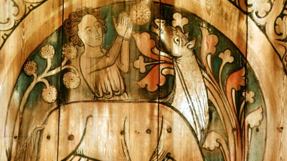 Bild: Staffan stalledräng, medeltida takmålning i Dädesjö gamla kyrka. Utförd av målarmästaren Sighmunder under senare delen av 1200-talet.