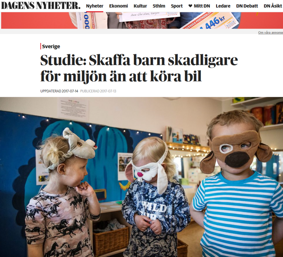 Och det här är ingen slump. En äldre artikel, från 13 juli 2017, med ungefär samma budskap i samma anständiga tidning illustrerar på samma sätt: vita barn. De som redan har få, ska föda färre. De som har många kan fortsätta få fler. Ja, och ta hit sina anhöriga. För det är ju enda gången vänstern tycker familjen är helig, när familjeåterföreningar kan leda till ännu mer invandring.