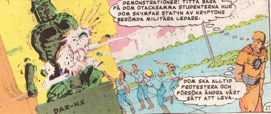 I min hyllor har jag ett nummer av serietidningen Stålpojken (7/1983). Där hittar man berättelsen ”Mannen som lurade tiden” om en ung vetenskapsman vid namn Zol-Mar på Krypton. Han vantrivs i sitt samhälle och drömmer om att med en tidsmaskin resa tusen år tillbaka till vad han uppfattar som planetens guldålder då general Dar-Nx härskade.