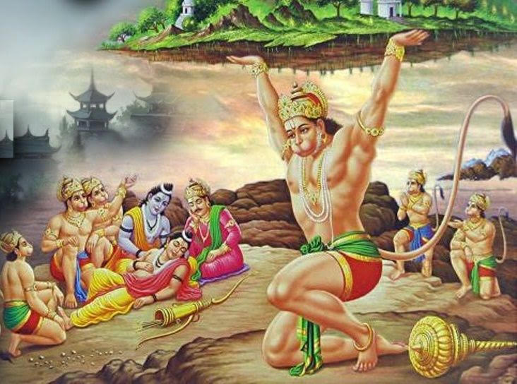 Storyn i Ramayana är följande: Guden Vishnu låter sig inkarneras i prins Rama, som efter ett styrkeprov äktar den undersköna Sita. Strax efter bröllopet råkar Ramas far Dasharatha av obetänksamhet lova bort tronen till Ramas halvbror Bharata, varpå Rama tvingas i landsflykt. Sita följer honom i exilen men kidnappas av Vishnus ärkefiende demonen Ravana, varpå följer en hissnande jakt som slutar på Sri Lanka. Rama får god hjälp av den atletiske apguden Hanuman, som bland annat räddar livet på Ramas lillebror genom att hämta en bit av Himalaya (se bild). På slutet återförenas Rama med sin Sita och inget öga är torrt.