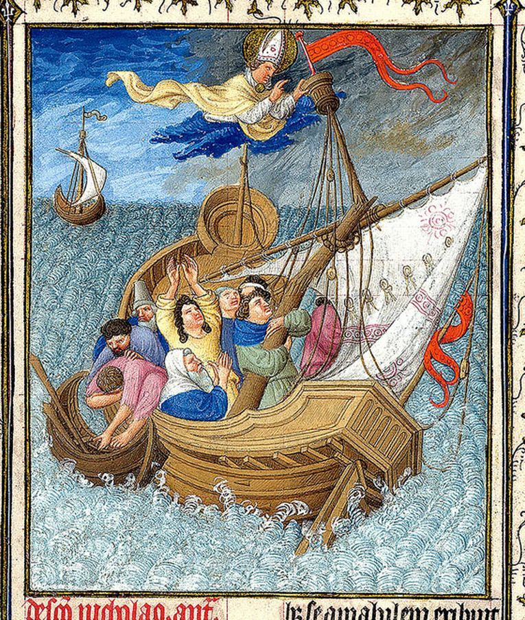 Nikolaus är sjömännens och fiskarnas skyddshelgon och det berättas att han kunde lugna havet när det stormade. Storkyrkan i Gamla stan i Stockholm är en av otaliga hamnkyrkor i den kristna världen som är vigd åt honom; den heter Sankt Nicolai kyrka.