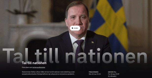 Ett tal till nationen kan också vara det som vi svenskar fick oss till livs för några dagar sedan, när Stefan Löfven framträdde i ett förinspelat filmklipp och sa ungefär samma sak som han sagt ända sedan coronakrisen startade – och på ungefär samma sätt. Han spädde med andra ord på den osäkerhet som redan råder.