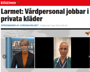 På ett privat äldreboende i Stockholm vägrade arbetsgivaren att tillhandahålla munskydd vid arbete med coronasmittade – på tvärs mot FHM:s rekommendationer. Kommunals skyddsombud stoppade arbetet och fick rätt av Arbetsmiljöverket. Stockholms stad överklagade, vilket får ses som ett av de mer ansvarslösa politiska besluten hittills under epidemin.