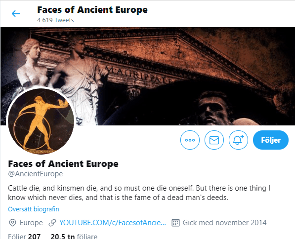 Twitterkontot Faces of Ancient Europe postar bilder och kommenterar om forntidens Europa, särskilt grekisk och romersk konst.