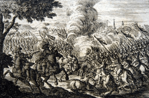 BILD: Slaget vid Hummelshof. Kopparstick från 1733.