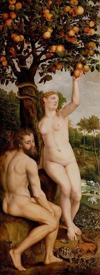 BILD: Adam och Eva i paradiset. Eva begår den första synden. Målning av flamländaren Michiel Coxie (1499-1592).