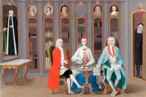 BILD: Familjen Stenbock dricker kaffe i biblioteket på Rånäs slott, omkring 1740.