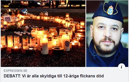 En 12-årig flicka har blivit mördad och nu går kommunpolisen Martin Lazar till attack mot hela svenska folket i en artikel i Expressen.