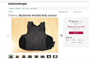 – I Sverige är det tillåtet för vem som helst att köpa och sälja skyddsvästar. Vem som helst får köpa en skyddsväst, så därför säljer vi dem, säger han lättsamt till Ekot.