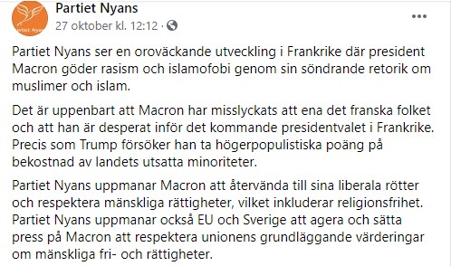 Det är därför det knappt blir några reaktioner alls i de stora nyhetsmedierna när islampartiet Nyans, fördömer Frankrikes arbete mot terrorism och terrorister istället för att fördöma terroristerna. Det är därför Sverige välkomnar IS-terrorister men ger islamkritiker inreseförbud. Det är därför det inte sker något konkret trots att vi står under attack. Frågan är hur länge det ska fortsätta på samma sätt.