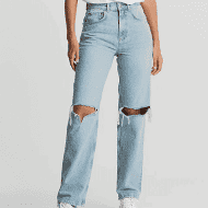 Vi vet alla vad som hände. Guldruschen tog slut men bomullskyperten fanns kvar. Modet ändrades så att jeansen skulle se slitna och reviga ut som om de redan jobbat fem år i Klondyke. För att slippa skicka plagget till guldfälten och betala någon för att kravla bland stenarna kom producenterna på att slitaget kunde åstadkommas så tidigt som i jeansfabriken genom att byxorna tvättades med pimpsten.