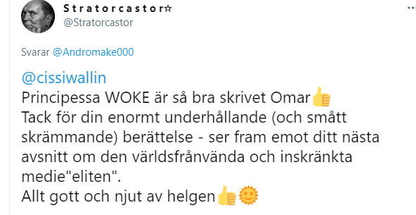Nedan följer ett slumpmässigt urval av de positiva reaktionerna på Twitter: