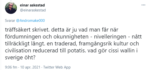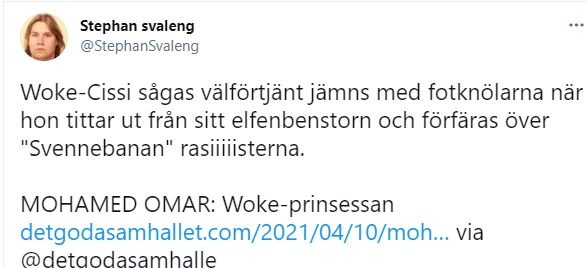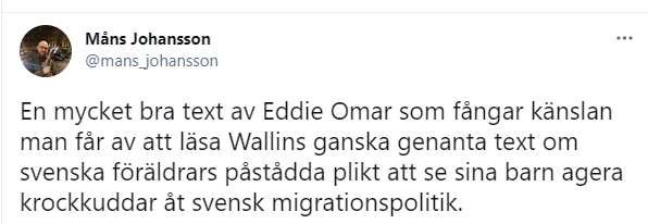 Den 10 april år publicerade Det Goda Samhället en satirisk artikel av Mohamed Omar. Artikeln är en replik på Cissi Wallins krönika i Expressen dagen före: ”Det får ni tugga i er, Svennebanan-föräldrar”.