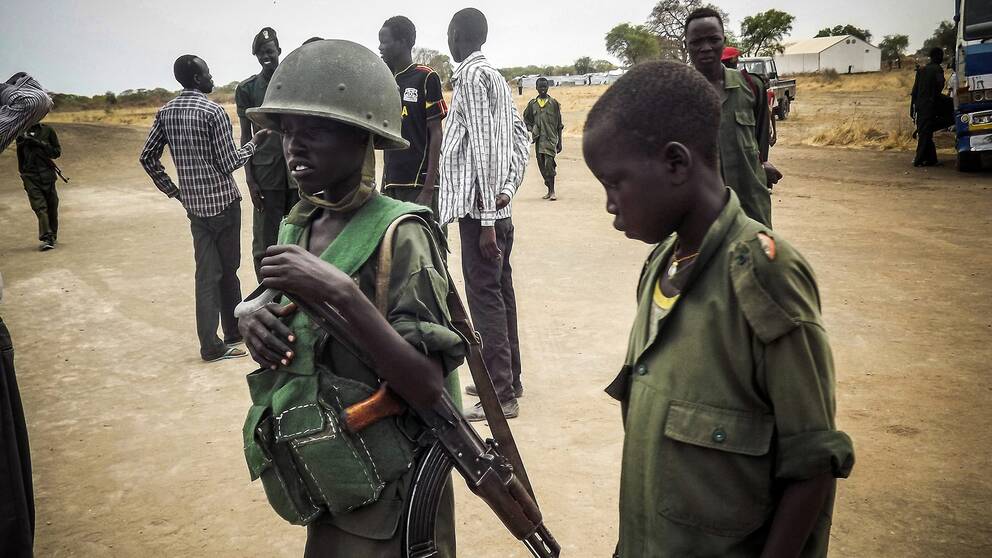 Sydsudan i östra Afrika har 12 miljoner invånare med olja som största nationella naturtillgång. Det finns runt 200 etniska grupper i landet. Särskilt stark är rivaliteten mellan dinka- och nuerfolken. I landet har det internationella påbudet från FN att förbjuda rekrytering av barnsoldater regelmässigt negligerats. Där finns många stridande grupperingar som har utnyttjat barnsoldater från nio/tio års ålder och uppåt.