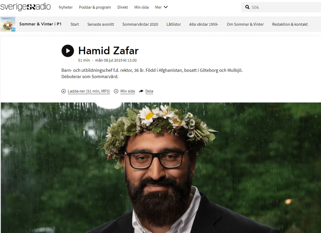 Rektor Hamid Zafar från Afghanistan hyllas som en hjälte, får utredningsuppdrag på skolverket och en ny tjänst som barn- och utbildningschef i Mullsjö. Han får sommarprata i P1 och blir vald till Årets Svensk. Får till och med vara med i På Spåret.