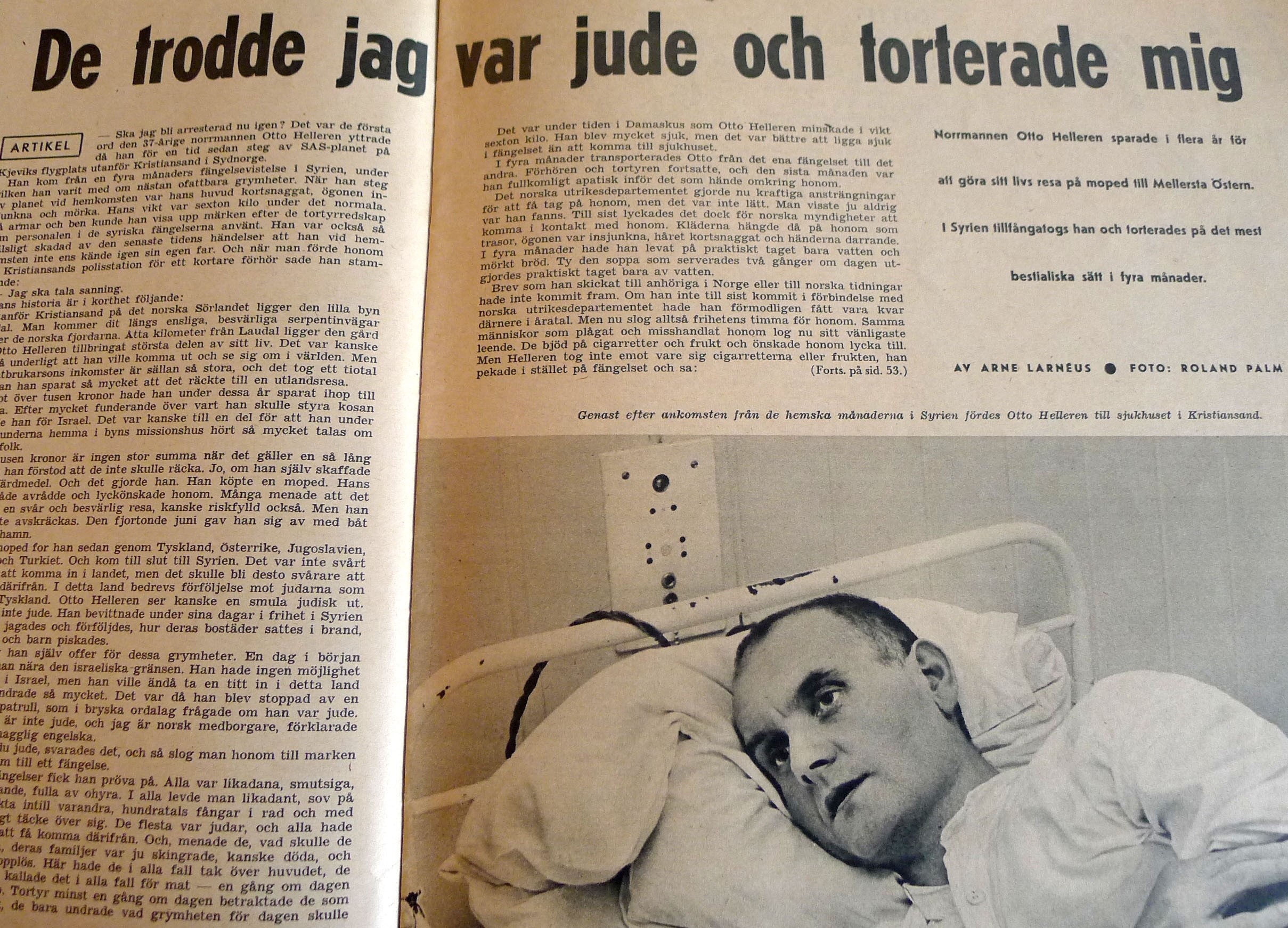 Ett reportage i Allers från 1958 (nummer 2) har rubriken ”De trodde att jag var jude och torterade mig” (se bilden ovan, foto: Roland Palm). Det handlar om den 37-årige norrmannen Otto Helleren som återkommit hem till en sjukhusvistelse i Kristiansand efter att ha setat i fängelse i Syrien ”under vilken han har varit med om nästan ofattbara grymheter”. Helleren ville se sig om i världen, köpte en moped och körde iväg från Norge till Syrien. En syrisk militärpatrull tog honom för jude, fängslade och torterade honom, innan norska UD efter fyra månader till slut kunde få loss honom.