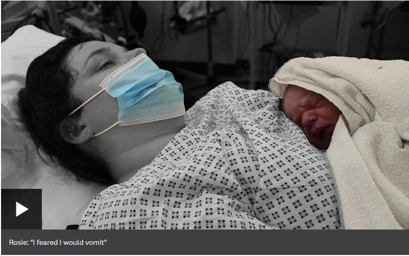 Enligt coronareglerna i Storbritannien behöver kvinnor inte bära munskydd under förlossningen. Trots detta berättar Rosie Brown och flera andra kvinnor att de tvingats av vårdpersonal att bära munskydd när de skulle föda.