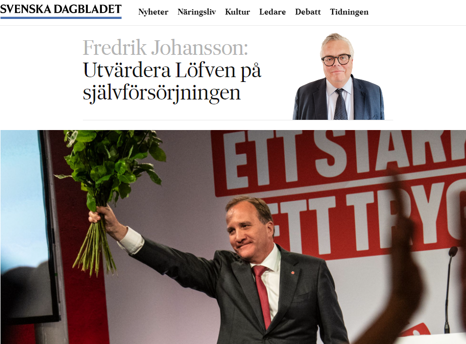 Utvärdera Löfven på självförsörjningen. Det skriver Fredrik Johansson i en krönika i Svenska Dagbladet. Och med 800 000 invånare som inte är självförsörjande är det sannerligen på tiden att Stefan Löfven får de riktigt svåra frågorna nu när valrörelsen 2022 sätter igång, och att han inte tillåts att arrogant avfärda alla frågor som ”käbbel”.