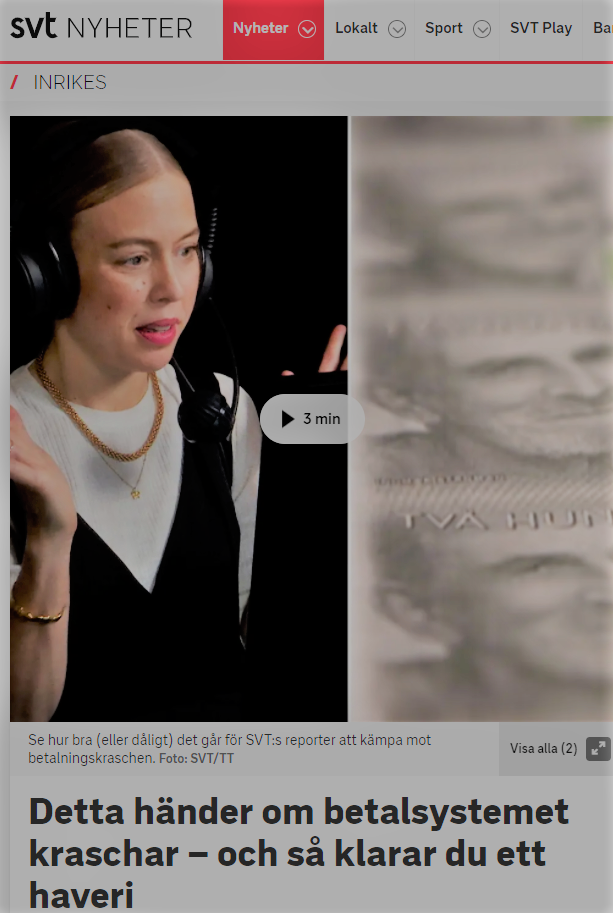 ”Detta händer om betalsystemet kraschar – och så klarar du ett haveri” är den sensationslystna rubriken på en artikel på SVT.