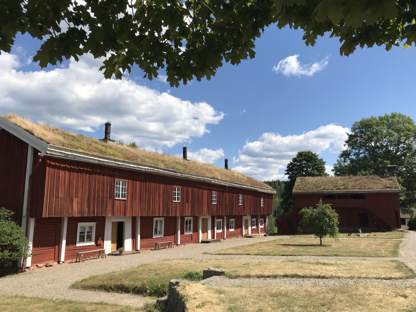 Den timrade mangårdsbyggnaden är värd ett besök i sig. Längs med hela byggnadens övervåning löper en loftgång, hela 38 meter lång, och en av landets allra längsta. Den är dessutom ovanlig, för att finnas på ett boningshus. Själv är jag väldigt förtjust i de krönta järnskorstenarna som är så typiska just för bergsmansgårdar, och som givetvis pryder taket även på Siggebohyttans mangårdsbyggnad.
