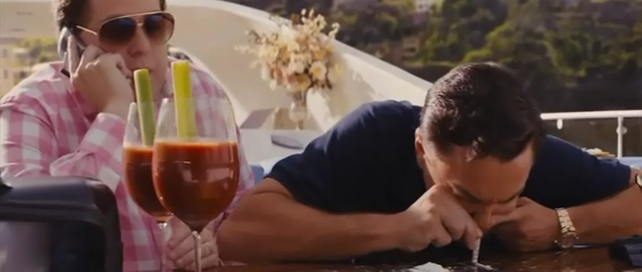 BILD: Jordan Belfort (Leonardo DiCaprio) sniffar kokain. Ur filmen The Wolf of Wall Street (2013).