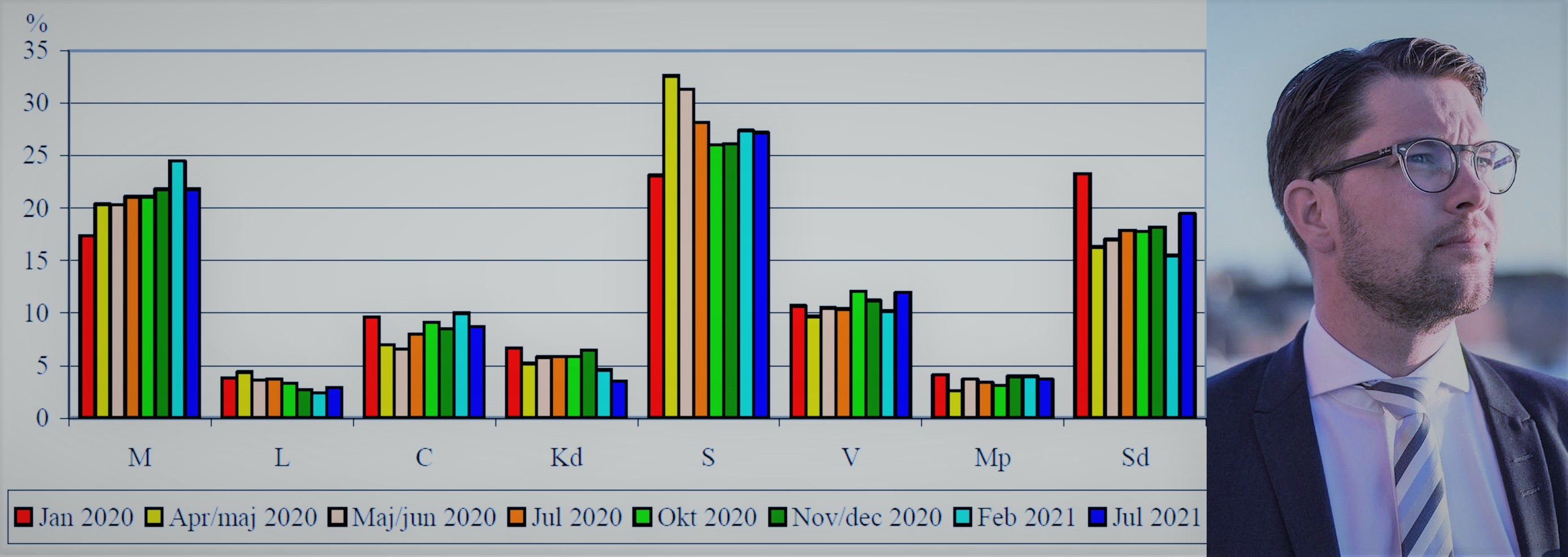 En ny mätning från SKOP (5/8 2021) visar att tre riksdagspartier skulle hamna under riksdagsspärren om det var val idag: Liberalerna, Miljöpartiet och Kristdemokraterna.