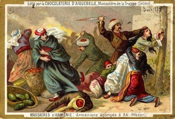 Samtida fransk teckning som visar turkarnas massaker på armenier: