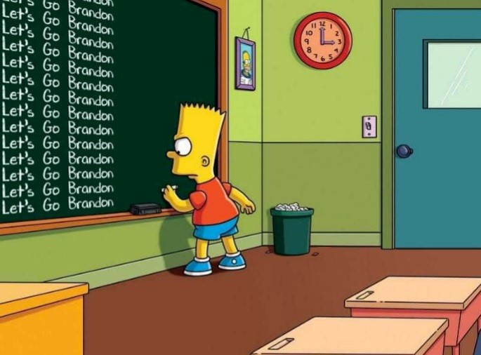I skämtbilden ovan skriver Bart Simpson, en figur i den animerade TV-serien Simpsons, frasen på svarta tavlan.