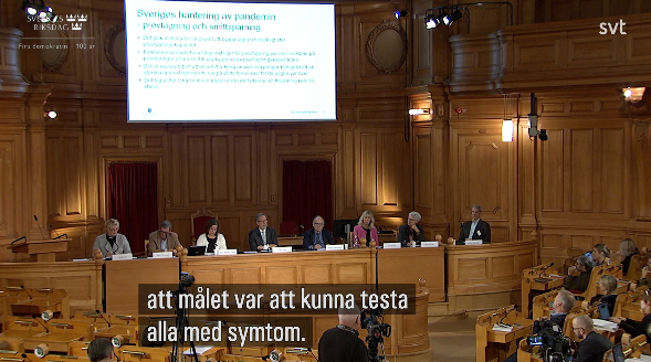 Kommissionen pratar om förlorade veckor, från det att sportlovsresenärerna kom hem med smittan från alperna och började sprida viruset ute i samhället, till att regeringen fattade beslut om testning och smittspårning. Och undra på att de veckorna förlorades. Vem har glömt hur regeringens husgud Anders Tegnell stod i TV på bästa sändningstid – eller rättare sagt från morgon till kväll – och arrogant förklarade att det inte skulle kunna bli någon smittspridning i det svenska samhället och att Italienresenärerna absolut inte skulle kunna ta med sig någon smitta hem.