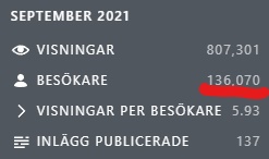 Antalet visningar och antalet unika besökare har ökat starkt på Det Goda Samhället denna höst. Nedan ser ni ökningen för månaderna augusti, september, oktober åren 2015-2021.