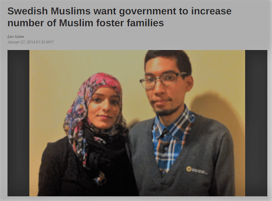 I intervjun berättas om ett malajsiskt, muslimskt par i Sverige som anklagats för att ha misshandlat sina barn eftersom dessa vägrat be sina böner. På grund av misshandeln hade socialtjänsten tagit hand om barnen. Men i artikeln beskrivs inte misshandeln som det stora bekymret, det stora bekymret är istället att barnen placerats i en svensk, icke-muslimsk fosterfamilj.