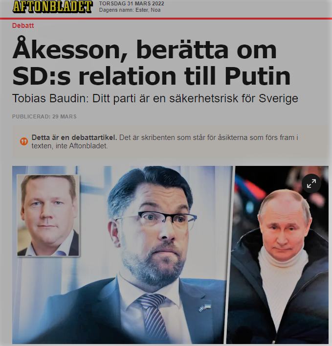 Nu spelar det förstås ingen roll hur Saudiarabien eller Iran eller andra islamistiska diktaturer beter sig, eftersom den samlade svenska statsmakten har beslutat att det just nu enbart är Ryssland som ska stå i fokus för kritik och fördömanden. Därför ser Baudin givetvis en politisk vinst att peka på att vissa SD-politiker gjort luddiga ställningstaganden i förhållande till den lede fi i öst.