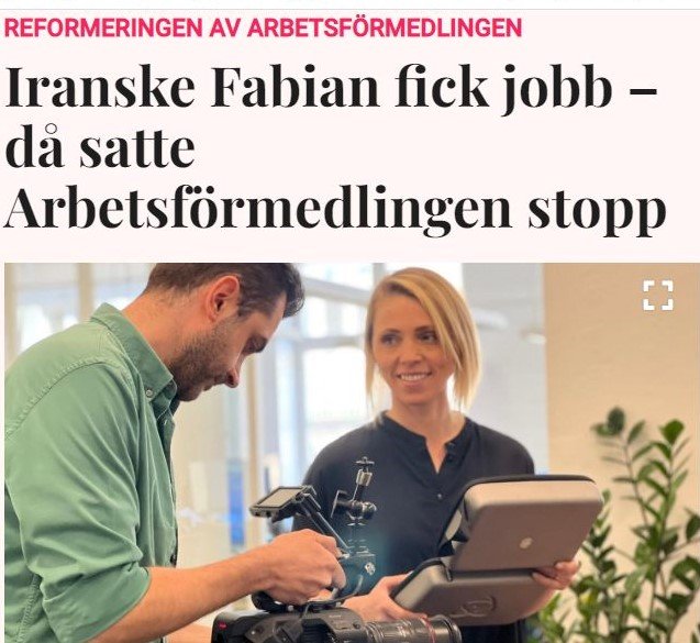 3) Tidningen Näringslivet finner detta så unikt och anmärkningsvärt att reportern Zoran Cale betonar att Fabian nu arbetar, lär känna sina kollegor, tränar på sin svenska och ”har heltidslön och betalar skatt”.