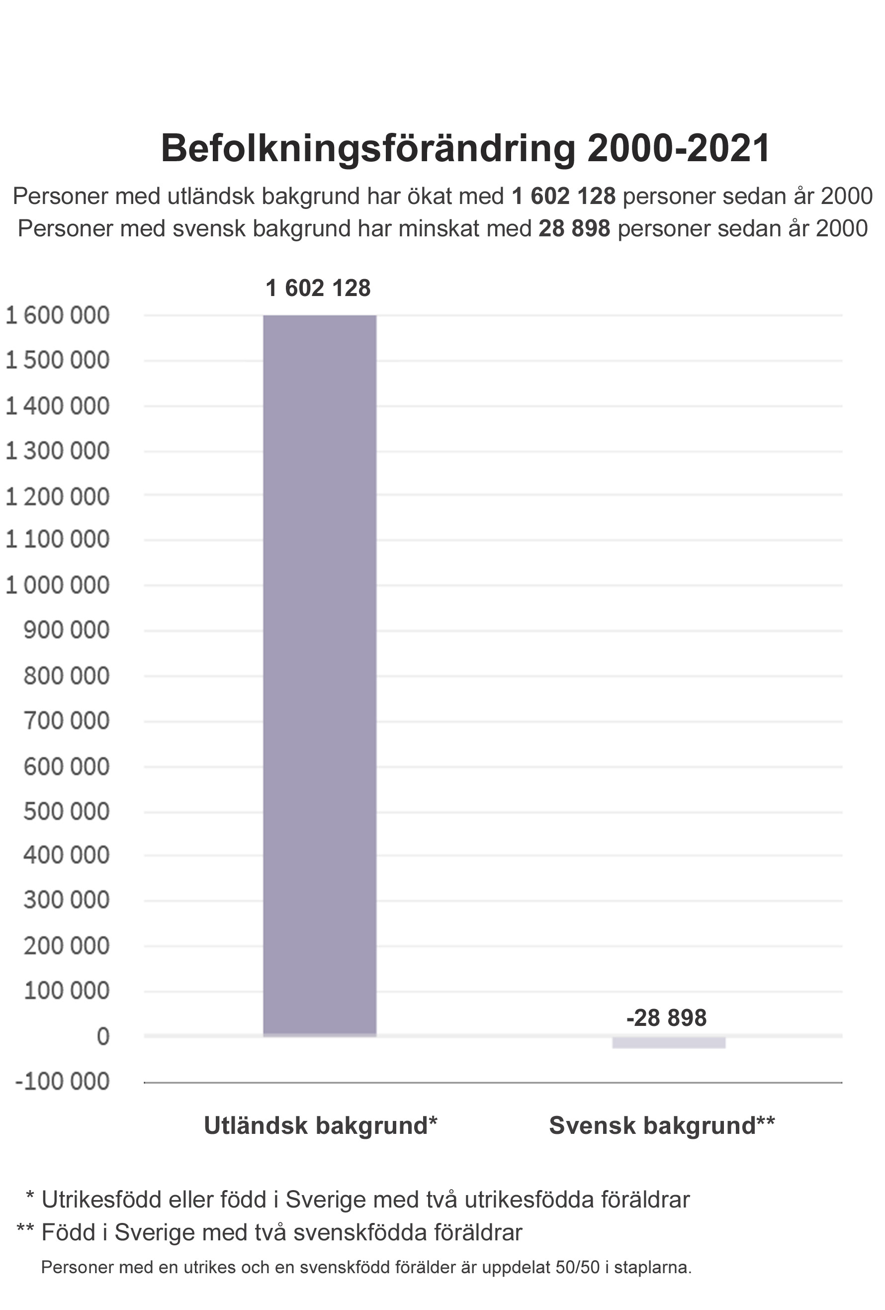 Under flera decennier har istället denna ideologi sått split mellan könen, försvarat islamister, vurmat för öppna gränser och därmed medverkat till islams framryckning i vårt land och till den stors demografiska förändring som Sverige har genomgått sedan millennieskiftet. Svensk migrationspolitik, med sin under lång tid högsta asyl- och anhöriginvandring per capita i västvärlden, ”ändrar fokus från kontroll till service” som Migrationsverkets generaldirektör Anders Danielsson uttryckte saken vid en konferens om demografi och en öppnare arbetskraftsinvandring 2012. Det handlade enligt honom inte om ”vilka migranter som vi ville ha utan vilka migranter vi kunde få” och om hur dessa kunde hitta nya vägar in i landet. Resultatet ser vi i diagrammet nedan.