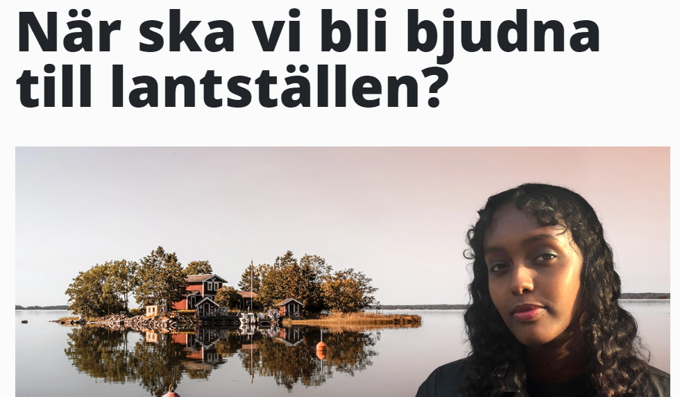 Själv är jag etniskt svensk och trots att jag snart levt i 60 år har jag i princip inga vänner alls – eller i alla fall ytterst få – som är så privilegierade som Abdullahis tycks vara. De jag känner som har lantställen har små ärvda torp, ofta avsides liggande, och ännu oftare omoderna och så små att bara utrymmet gör det mer eller mindre omöjligt att bjuda med vare sig Abdullahi eller någon annan på sommarvistelse där. Våra torp är vårt arv – en gång var de bostäder där fattiga och underprivilegierade svenskar växte upp. De blir inte per automatik allas egendom bara för att de väcker avund hos vissa. Eller måste vi göra oss av med hela vårt arv för att folk ska bli nöjda?