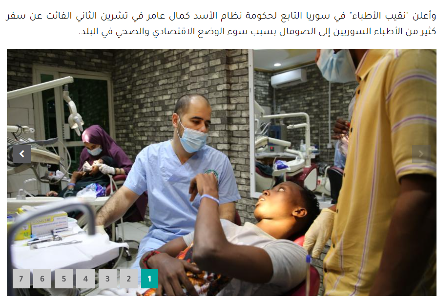 I den här arabiska artikeln kan man läsa om den syriske tandläkaren Ahmed al-Zubai. Han berättar att hans klinik går mycket bra och att han är optimistisk om Somalias framtid: det pågår en tillväxtboom, säger han.