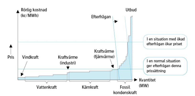 Energimarknadsinspektionen visar en snarlik bild som redovisar olika kraftslag efter produktionskostnad:
