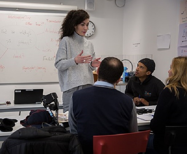 Bild: SFI-undervisning för akademiker i Lund, 2018 (Källa: Wikimedia Commons)