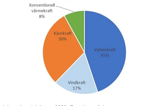 Här finns inga importerade bränslen utom uran och kanske lite fossiler som ännu inte hunnit ersättas av avfall, pellets och annat förnybart inom värmekraften.
