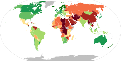 Nedan återges graden av demokrati i olika länder med hjälp av ett index utarbetat av The Economist.
