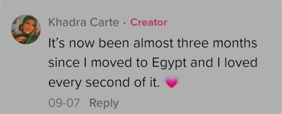 I ett antal klipp framgår det att Khadra nu flyttat till Kairo i Egypten där hon studerar Koranen: