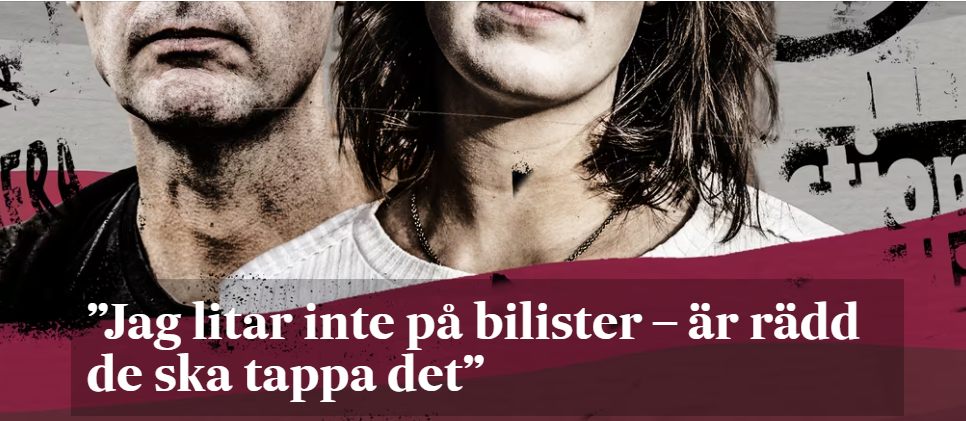 Hallegosingen då. Men det är klart, väljer man att sätta sig på en motorväg mitt i rusningstrafiken kan det nog finnas fog för rädslan. Dock inte för att bilister ”tappar det” särskilt ofta utan främst för att det tenderar att ske olyckor om folk ger sig ut på stora vägar. Det är bland annat därför det är olagligt för gående att vistas på motorvägar, men Tina och Pontus är ju så rättfärdiga att de inte behöver bry sig om sådana petitesser som lagstiftningen. Men vad skulle hända om någons bromsar plötsligt skulle sluta fungera, när Tina sitter där och värnar klimatet? Vad skulle det göra med en bilist att ofrivilligt orsaka en annan människa skada eller till och med död?