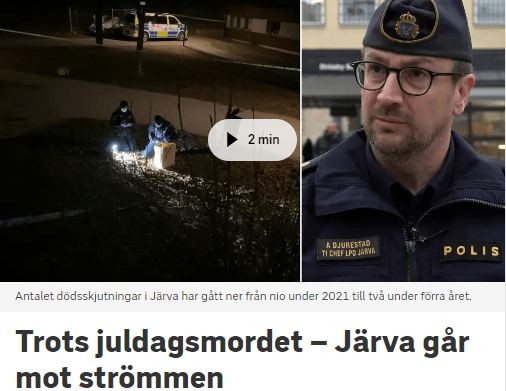 SVT skulle inte vara SVT om de inte försökte frisera sanningen om den eskalerande kriminaliteten och det dödliga våldet. Sin vana trogen slår man nu på stora trumman för att Järvaområdet faktiskt hade färre skjutningar 2022 än året innan. Detta kallar man, utan några som helst belägg, för ett ”trendbrott”.