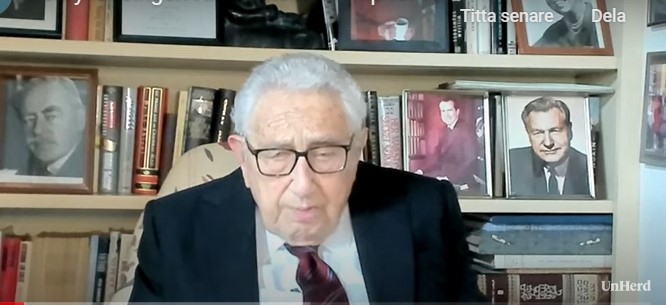 Nu har han ändrat sig vad gäller Ukraina. Sedan i förrgår eller däromkring menar han att Ukraina bör gå in i Nato. Hans förra geopolitiska uppfattning, som jag tror han haft sedan kriget började för snart ett år sedan, var att gränserna borde återställas till vad som gällde före det ryska anfallet samt att Ukraina skulle hålla sig borta från Nato. Om Ukraina tidigare hade gått med i Nato, säger Kissinger att han nu insett, så hade konflikten hamnat där den nu är, det vill säga i öppet krig, vilket han velat undvika. Därför tyckte han att Ukraina borde hålla sig lugnt. Men nu, när det ändå råder öppet krig, är det klokare att samarbetet mellan Nato och Ukraina fördjupas så mycket det går.