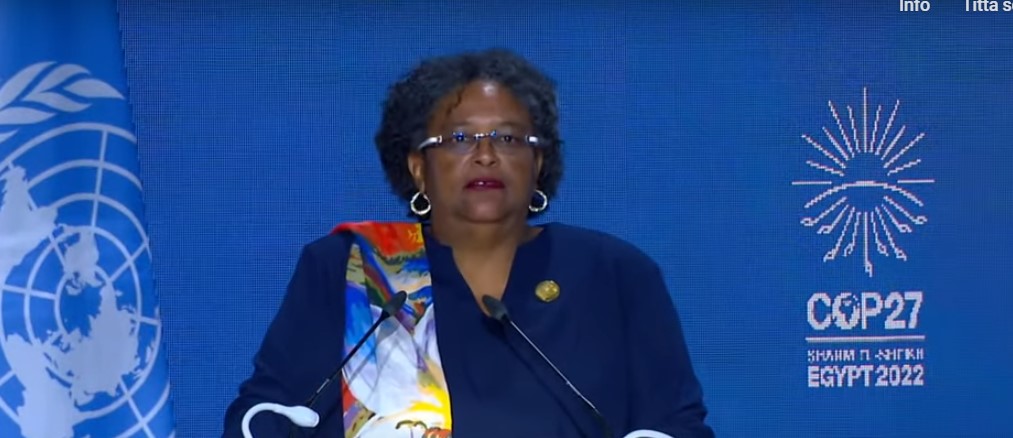 Det började med att Kjöller hör premiärminister Mia Mottley av Barbados (som på bilden håller tal på COP 27 i Egypten) kräva kompensation och ersättning från Nord för alla möjliga rasistiska förseelser inklusive ekonomisk utsugning genom århundradena. Nu ville premiärministern också ha betalt för klimatkrisen. Det verkar Kjöller tåla. Men sedan vässar premiärministern argumenten och utslungar anklagelser mot Nord för korruption i världsklass och ville ha extra bonus för det. Det blir för mycket för Kjöller: