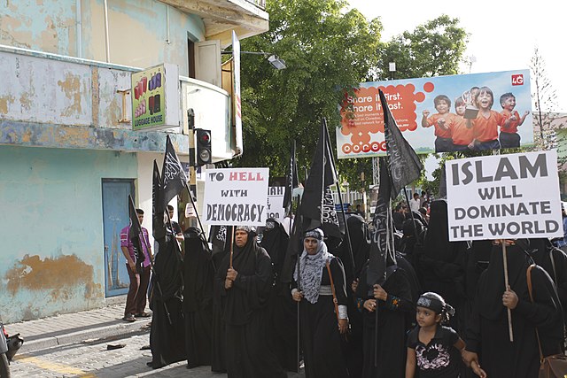 Bild: Demonstration mot demokrati och för sharia i Maldiverna 2014 (wikimedia commons)
