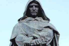 Giordano Bruno (bilden) föddes 1548 utanför Neapel och skrevs som 17-årig in som novis i ett dominikanerkloster. Han avlade ordenslöftet och prästvigdes 1572. Han var en flitig studiosus, en djupt begåvad intellektuell och fritänkare som ifrågasatte kyrkans dogmer. Dominikanernas ordensledning kände sig utmanade och initierade en kättarprocess. Bruno vägrade spela med och delta i motreformations och inkvisitionens dominerande religionsideologi. Munken lade kåpan på stolen och gav sig iväg. Året var 1576. Under mer än ett decennium spred han sedan sina analyser och läror genom föreläsningar och i skrifter vid universiteten i Paris, Oxford och Wittenberg.