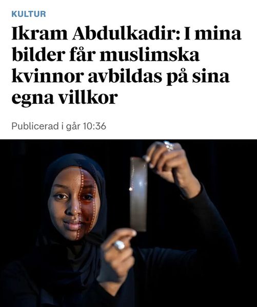 ”Numera fotograferar Ikram Abdulkadir andra familjemedlemmar också, (förutom systrarna, min anmärkning) men även vänner hon kan identifiera sig med; svarta muslimska kvinnor i Sverige.