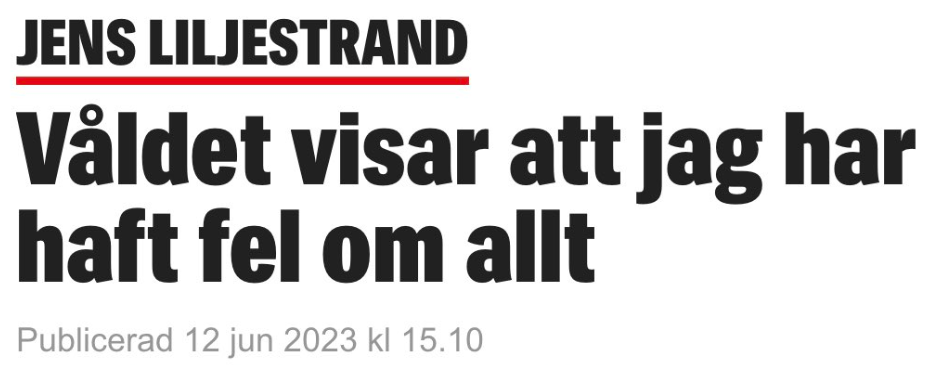 Jag köper inte ett ord av vad Jens Liljestrand säger. Man måste vara bra dum för att inte förstå hur migrationspolitiken har påverkat samhället, och jag tror inte att Liljestrand är korkad. Däremot framstår han som en hycklare av stora mått. Inte förrän nu, när de alternativa medierna banat väg för ett öppnare diskussionsklimat, finner han det för gott att plötsligt erkänna att han ”haft fel”.